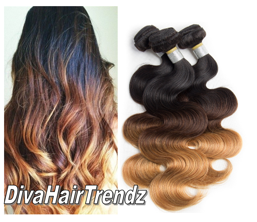 22, 22, and 24" - Brazilian Remy Body Wave 3 Shade Black to Brown to Platinum OMBRE [3 BUNDLES]